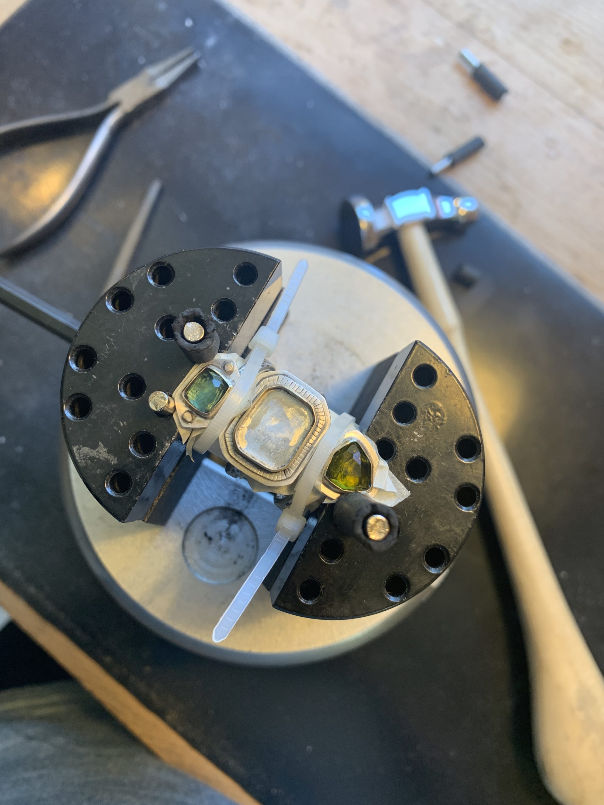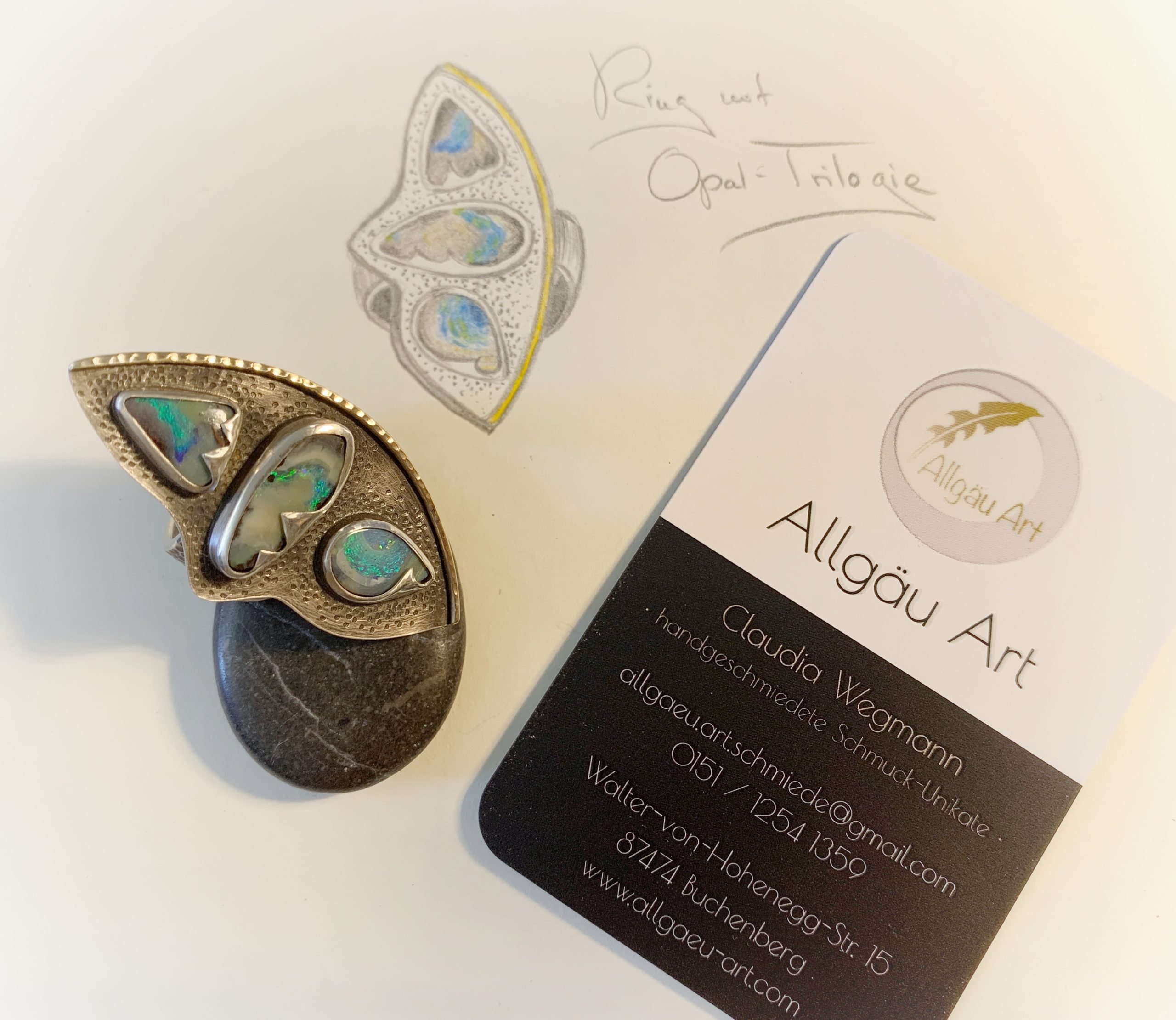 Nur für meine Kunden halte ich diese Ideen auf Papier fest, um meine Idee für andere sichtbar zu machen. Wenn ich für mich Schmiede, dann entsteht das Schmuckstück aus dem Kopf und beim Erarbeiten kann es sein, dass ich noch abwandle und die Idee verfeinere oder variiere. Das ist dann Flow pur – da bin ich völlig im „Hier und Jetzt“!